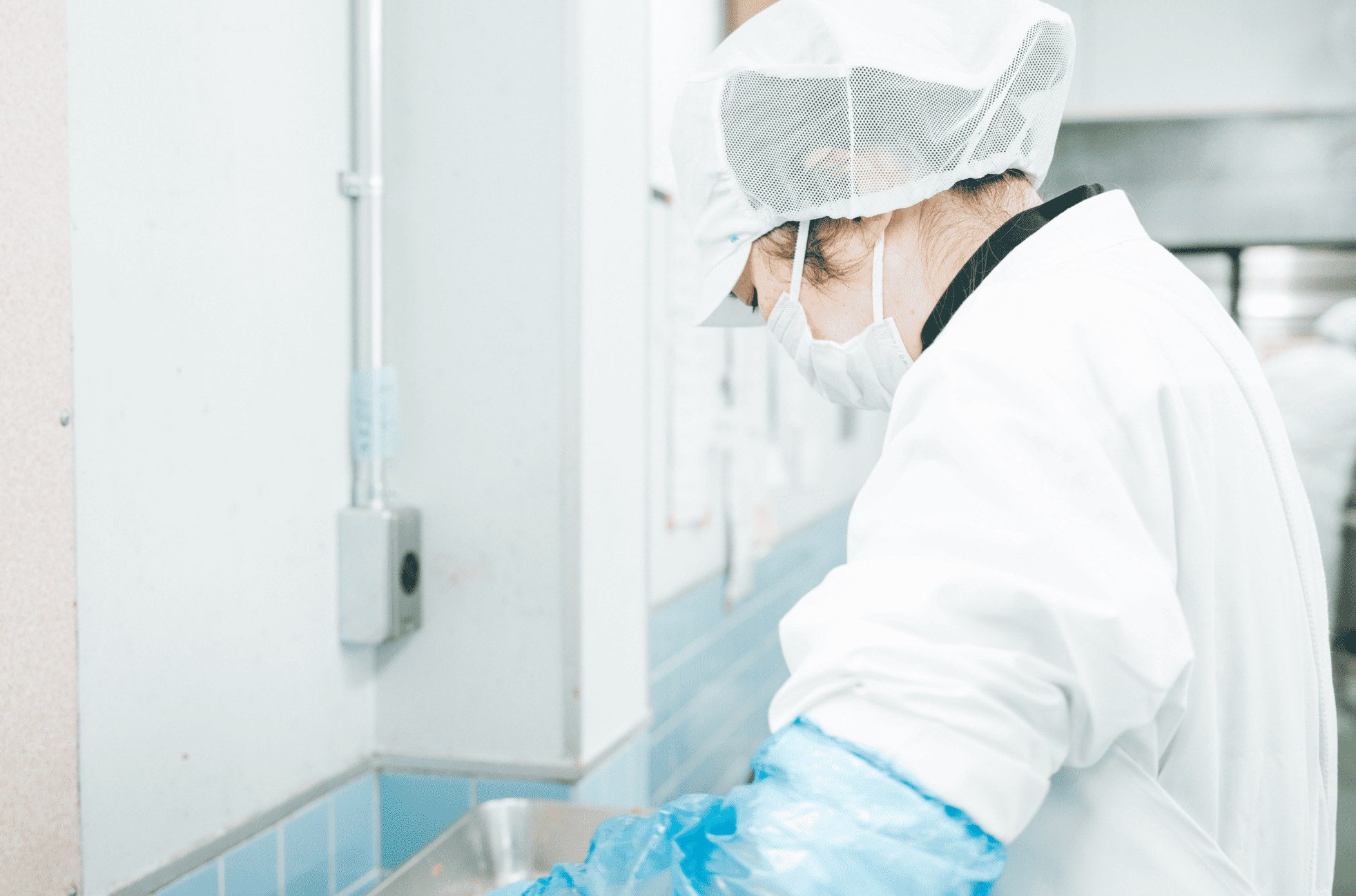 衛生管理が徹底された環境で、設備が正確に量り、混ぜ、仕込みを行います。